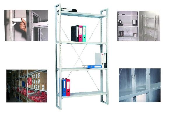 В 2001 году на выставке в Италии был представлен итальянский стеллаж, который привлек наше внимание и был взят за основу при разработке конструкции металлического универсального стеллажа с полками на зацепах. Стойки стеллажа имеют сложный геометрический профиль, выдерживающий большие нагрузки, шаг перфорации позволяет регулировать высоту полок в секции стеллажа. Крепление полок на зацепах без болтовых соединений обеспечивает высокую скорость сборки. В настоящее время осуществляется производство оцинкованных стеллажей, а также металлические полочные стеллажи с полимерным покрытием.